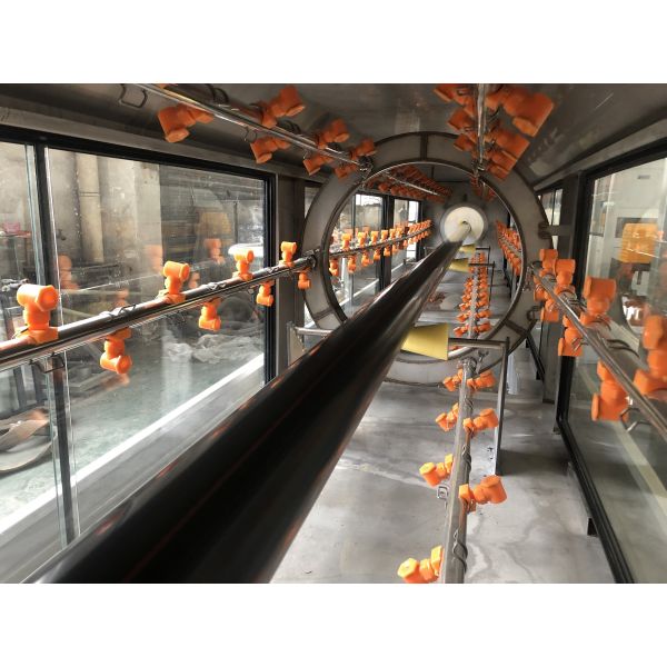 Vacuum Sizing Tank: The hot pipe enters a vacuum tank to solidify its outer diameter (OD) and ensure dimensional accuracy.